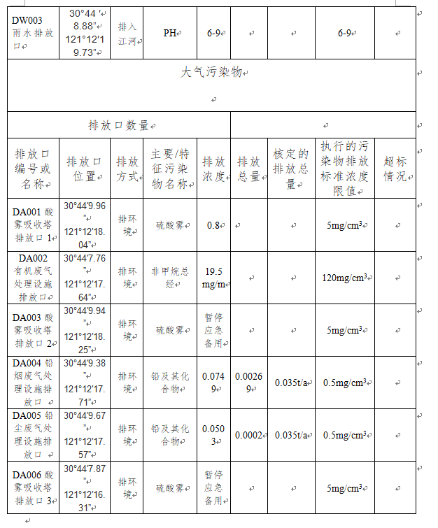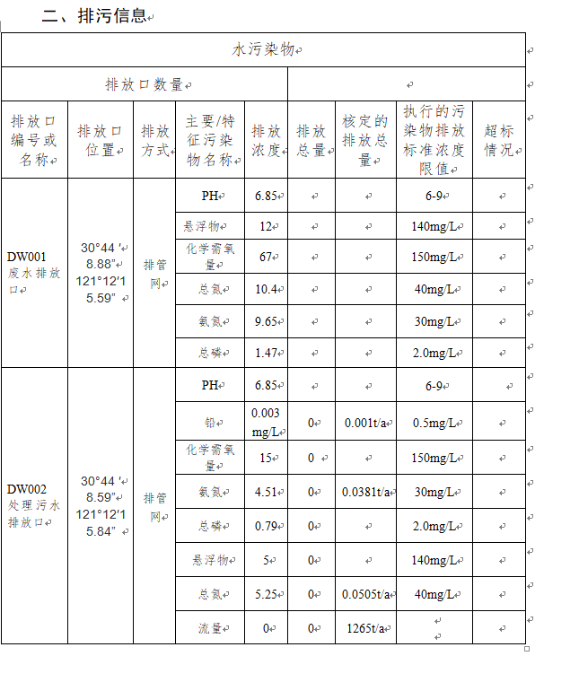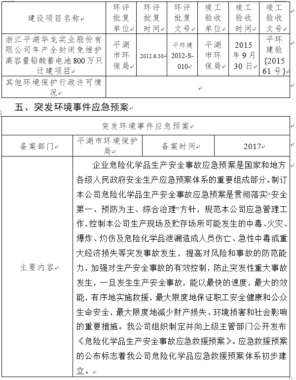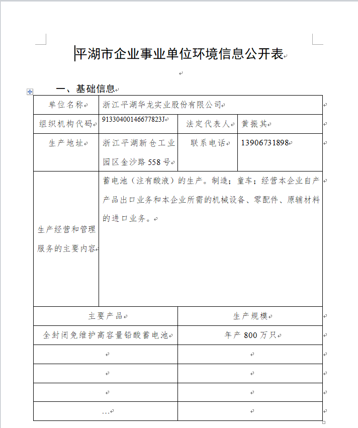 浙江平湖華龍實業股份有限公司環境信息公開表
